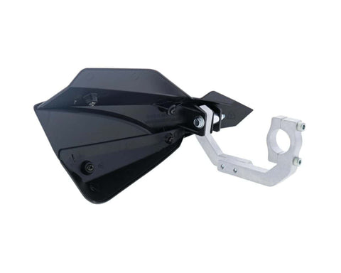 It has slim profile handlebar clamps for easy installation. The clamps are manufactured from high grade aluminium with adjustable fit in 2 side positions. The SABRE features impact resistant moulded plastic guards. With top & bottom deflectors fitted, riders have the ultimate coverage from roost, trail debris and harsh environments. With the deflectors removed, the low profile guard provides a minimalist design with venting for increased airflow. The SABRE range of handguards has an extensive range of deflector colors matched to popular motorcycle brands.