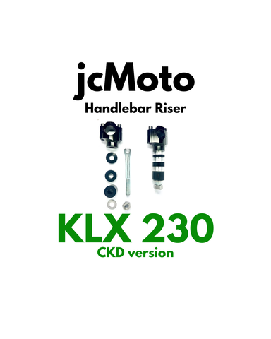 We tried out the Kawasaki KLX230 and found its ergos to be fantastic, however there was one thing that caught our attention. It was the ergos for handlebars. Since the Kawi is a beginner Dual Sport, the handlebars are a bit low. And if you need to have some fun off-road, you need those bars to be in a comfortable position. So we went to the drawing board and came up with a set of handlebar risers for the Kawasaki KLX 230. With 3 sets of spacers you can raise the clamps in increments of 5mm to a total of 35mm. Go ahead try them, they’ll allow for a roomy cockpit and comfortable seating position. But more importably they'll enhance your off-road experience like you can't imagine.