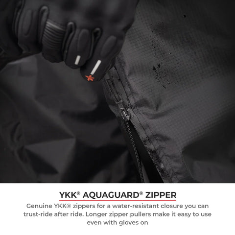 Genuine YKK® zippers for a water-resistant closure you can trust—ride after ride. Longer zipper pullers make it easy to use even with gloves on.