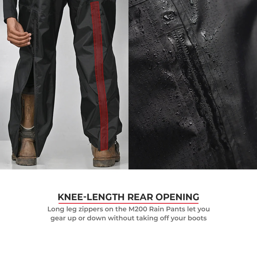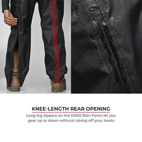 Long leg zippers on the M200 Rain Pants let you gear up or down without taking off your boots.