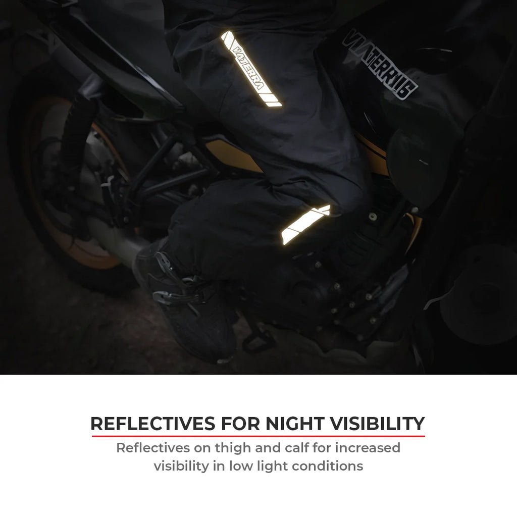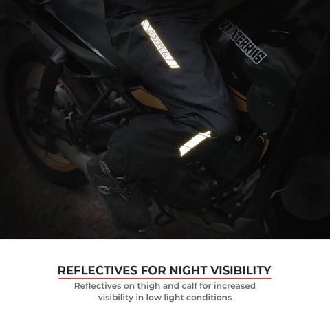 The ViaTerra M200 Rain Pants are designed to keep you dry during monsoon rides. Designed to be worn over the riding pants with longer YKK® Aquaguard® WP zippers give enough room to put the rain pants on or take off. Lightweight, compact and can be stored in a separate pouch!