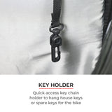 Two straps loop through the pillion footpeg (to secure the bag in place)