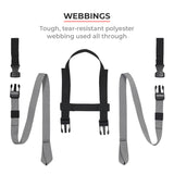 Webbing: Tough, tear-resistant polyester webbing used all through
